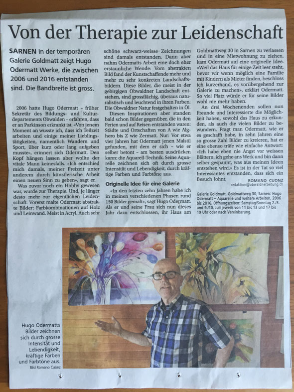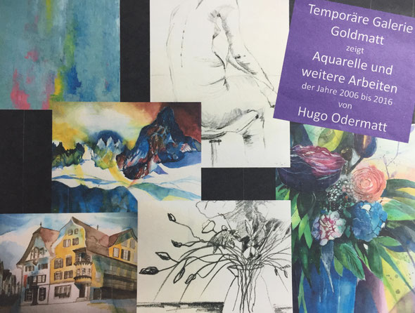 Im Juni 2016 zeigte ich in der Temporären Galerie Goldmatt (Goldmattweg 30) meine Arbeiten der letzten 10 Jahre (2006 bis 2016). Dies sind dies Aquarelle, Skizzen, Zeichnungen, Acrylbilder, Ölbilder, Drucke, insgesamt mehrere Hundert Werke. Davon zeigte ich einen repräsentativen Querschnitt.