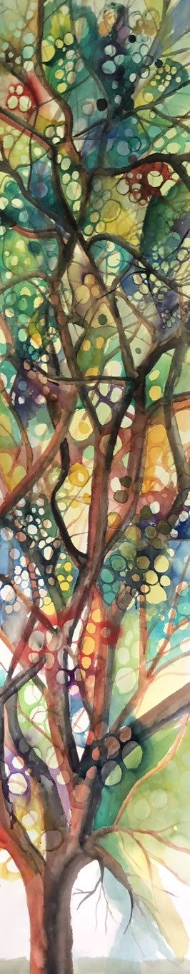 Mit den gewählten Formaten stosse ich selber in neue Dimensionen vor. Ich habe nun Erfahrungen gesammelt, wie ich drei Meter lange Aquarellpapiere bemalen und transportieren kann.